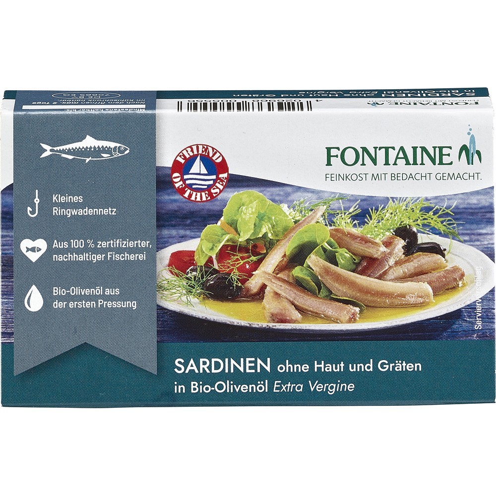 Ingrediente: file de sardine Sardina pilchardus 75%*, ulei de masline**24%, sare de mare1%. **provine din agricultura ecologica,*prin încalzire este posibila pierderea greutatii.